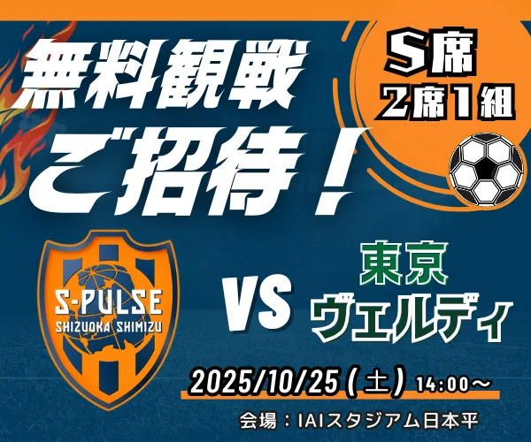 【抽選】10/25エスパルス観戦チケットが当たる!