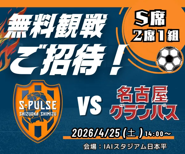 【抽選】2026/4/25 エスパルス観戦チケットが当たる!