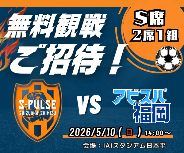 【抽選】2026/5/10 エスパルス観戦チケットが当たる!